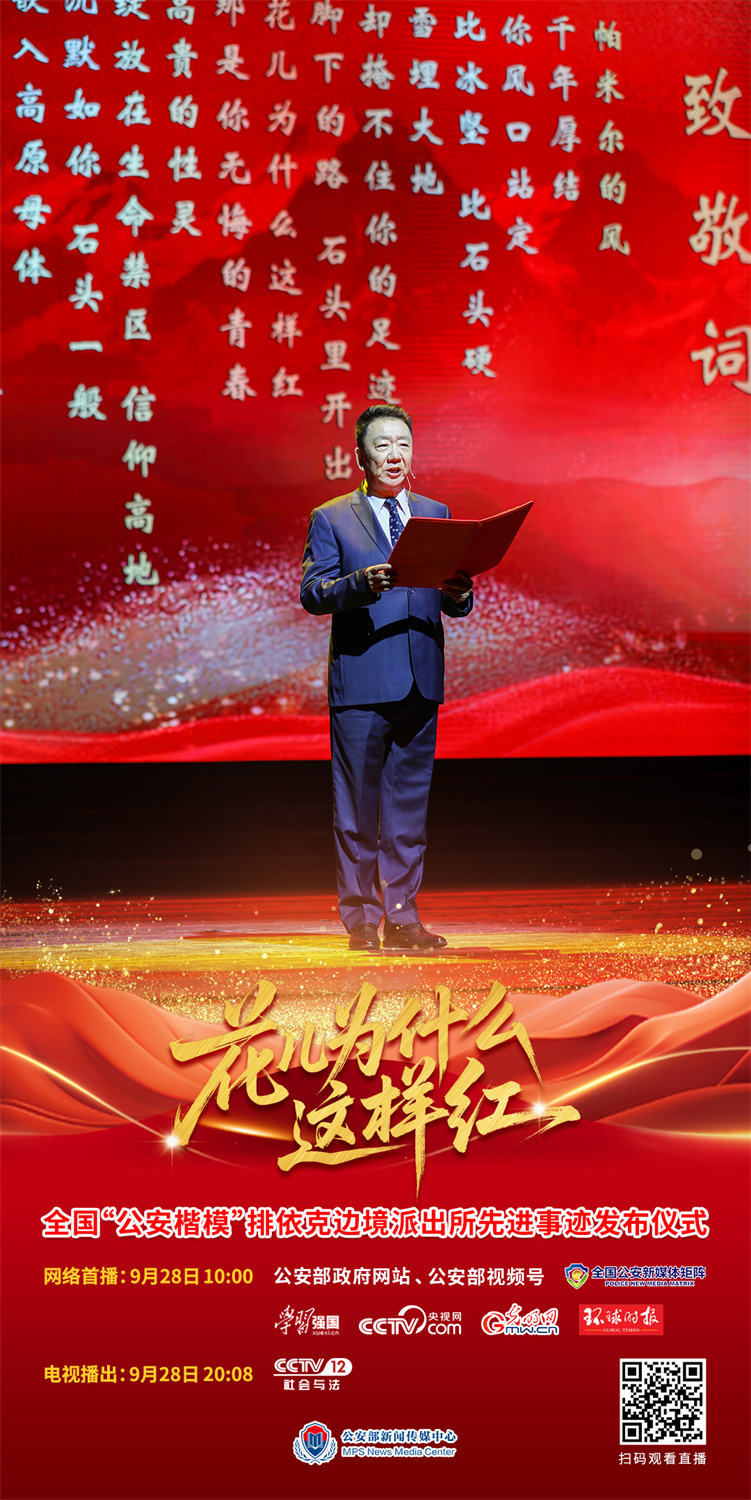 9月11日11时25分,新疆乌鲁木齐卡姆剧场,全国“公安楷模”排依克边境派出所先进事迹发布仪式专题节目正在录制